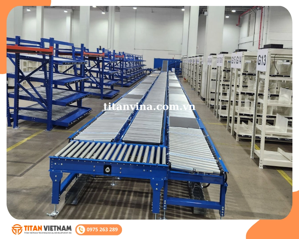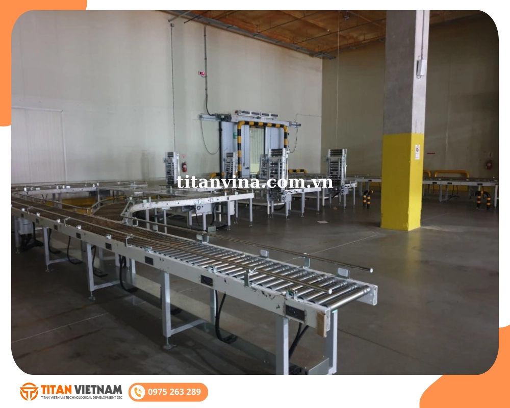 - Băng tải pallet: Vận chuyển nhiều bao cùng lúc