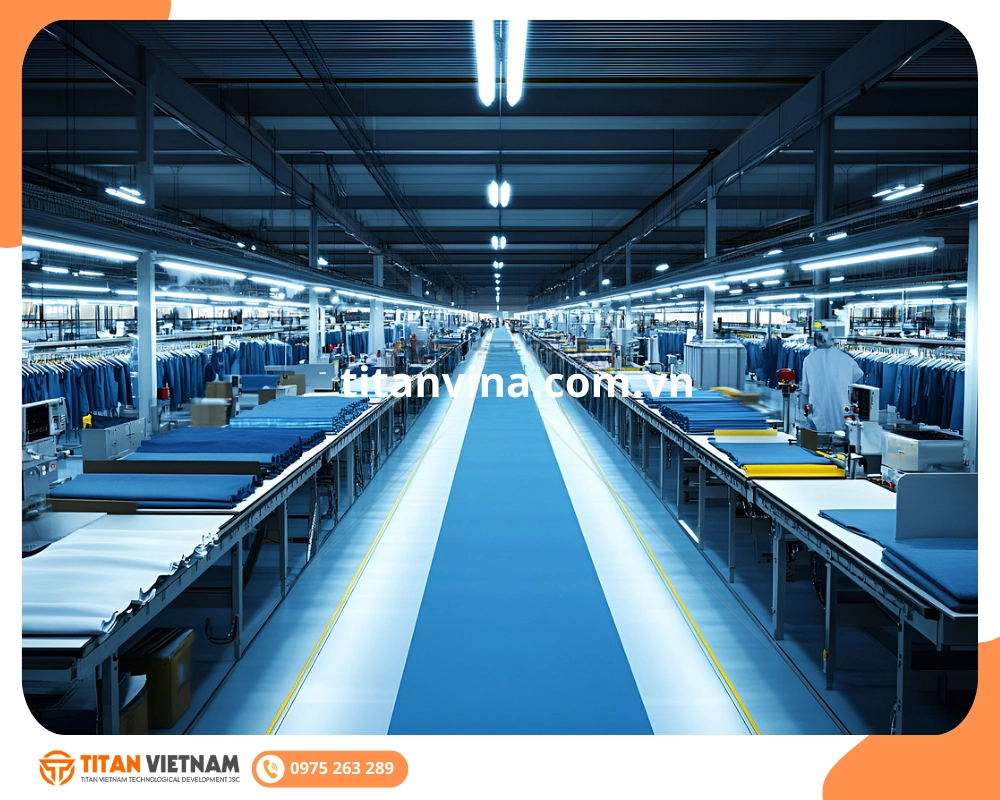 Hệ thống kết nối các công đoạn như cắt vải, may, kiểm tra và đóng gói, giúp quy trình sản xuất diễn ra liên tục và hạn chế tối đa gián đoạn.