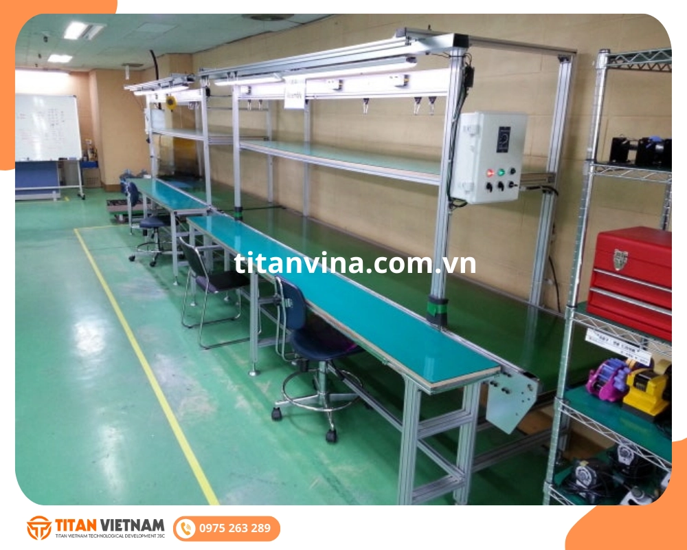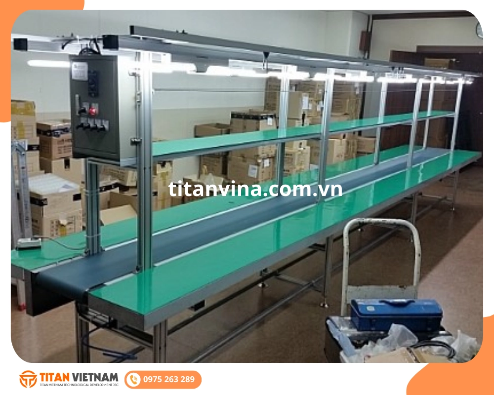 Giúp vận chuyển vải và sản phẩm qua các công đoạn cắt, may, kiểm tra và đóng gói một cách liên tục.